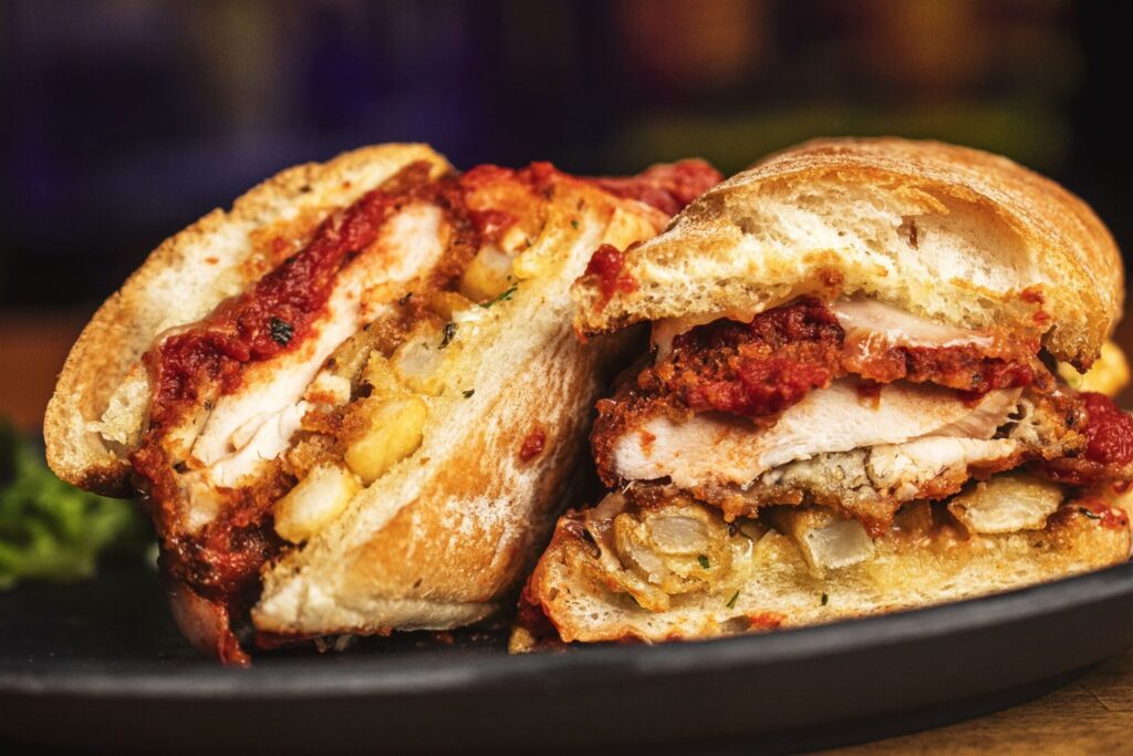 Italian influences are found in the Hudson Co. Chicken Parm, with Gajardo’s twist of French fries as part of the sandwich, helping the bread soak up the marinara.