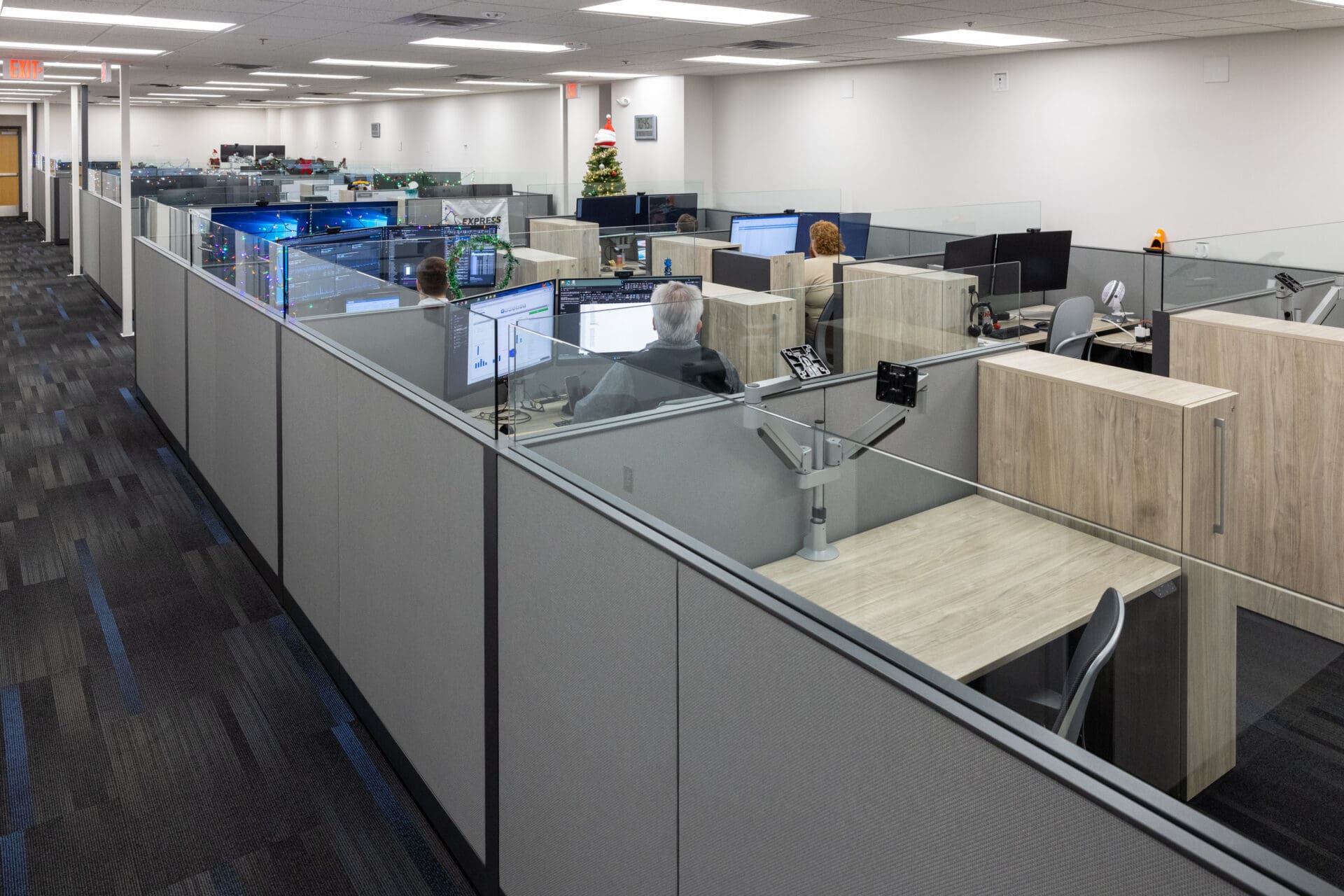 Because it is an operations center, IOP “did a great job logistically of installing, but also in the planning process as far as the design of furniture and workstations, so they would function for us and our customers. We had to plan in more detail as far as white noise and soundproofing with people on calls.”