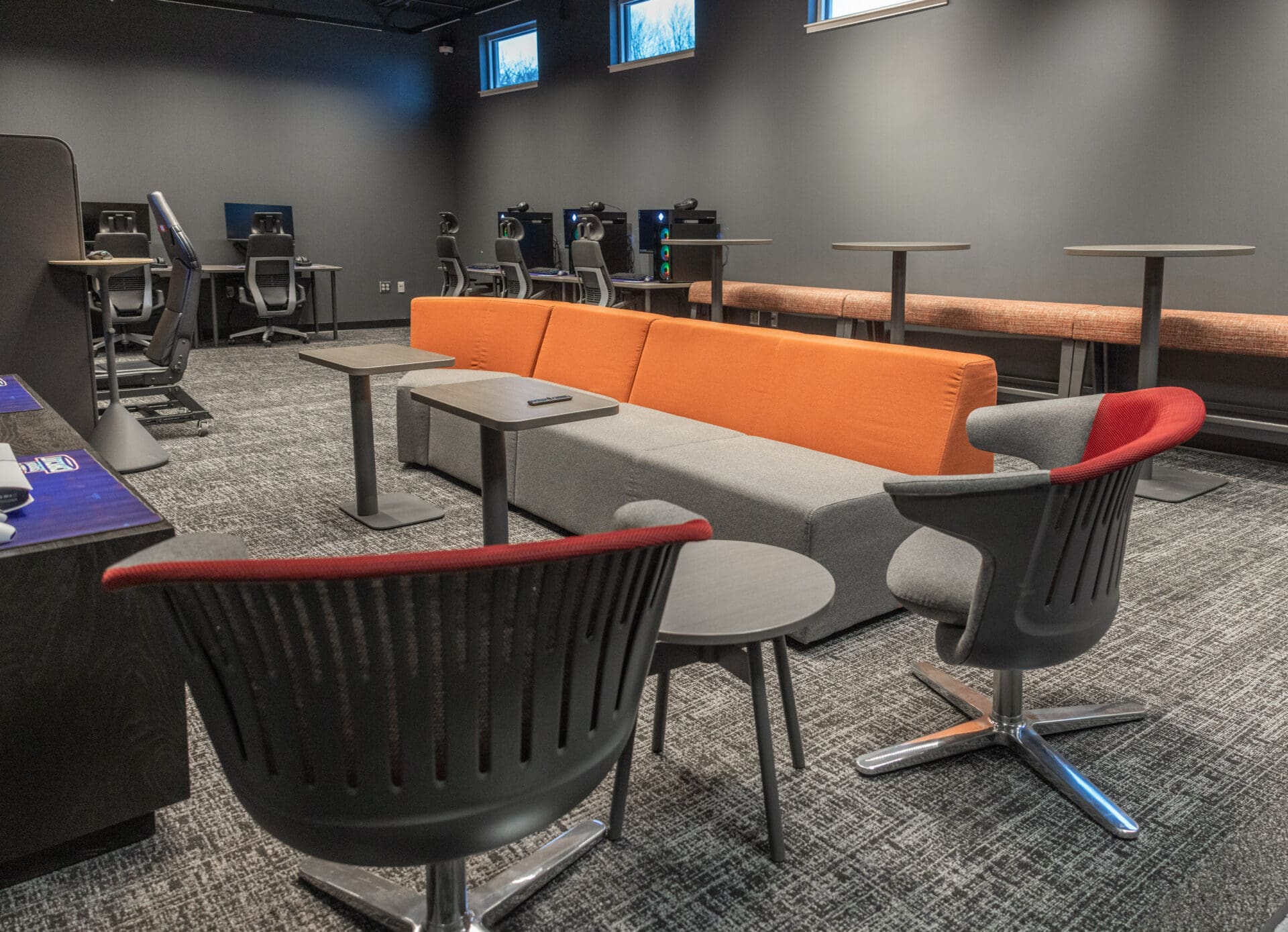 “Steelcase has talked about these for a while, and we haven’t seen them much in South Dakota, so it was fun to see a business actually incorporate an esports area,” Hogan said. “We have some fixed areas for competitive gaming at a desk but also a tiered lounge area with taller seating behind for watching competitions.”