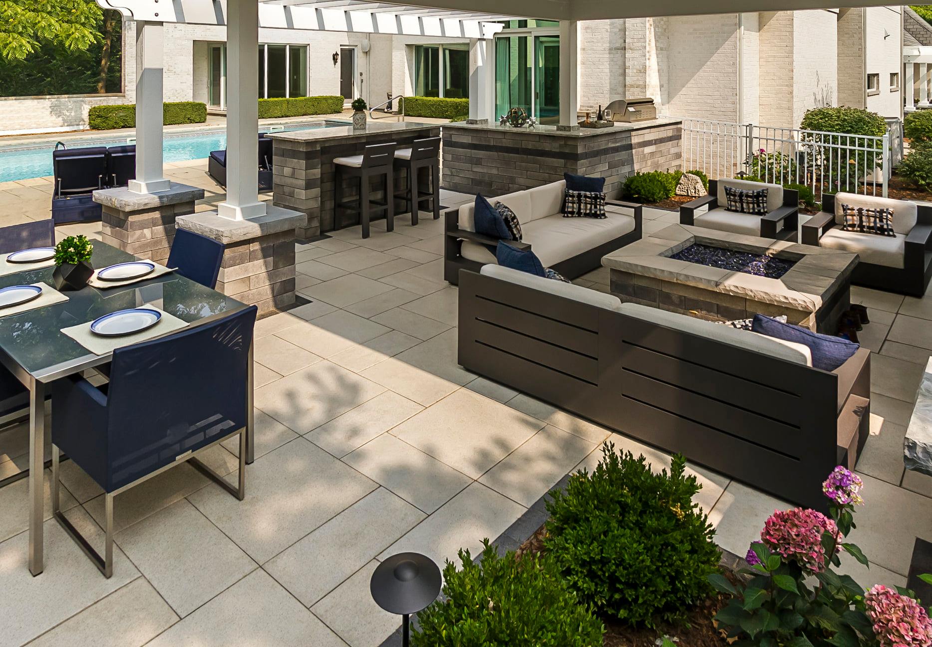 Oversized pavers and clean, straight lines are leading design decisions, Larson said.