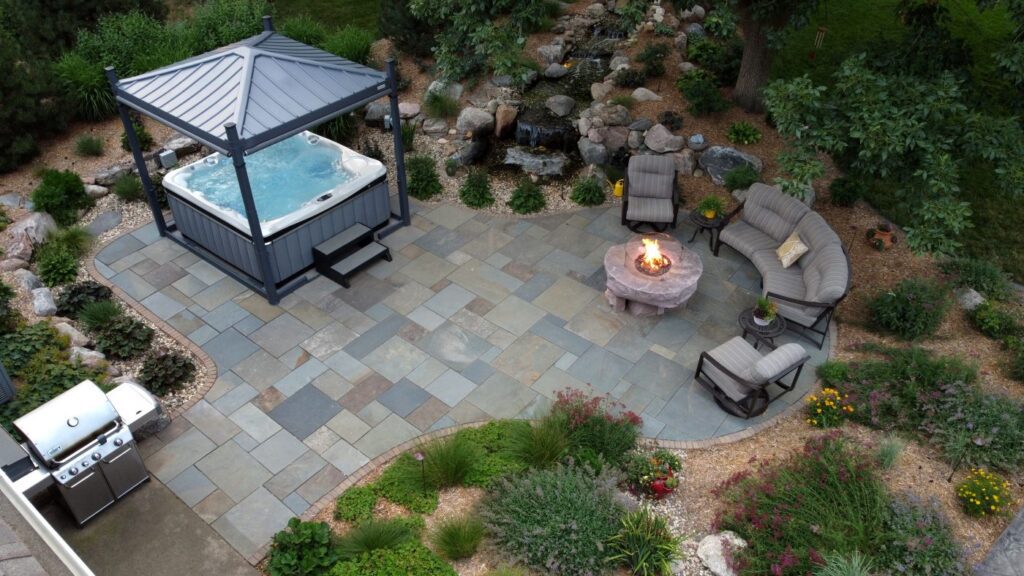 “Outdoor kitchens, fireplaces and fire pits continue to be big,” he said. “We’re doing more cool fountains than waterfalls when it comes to water features.”