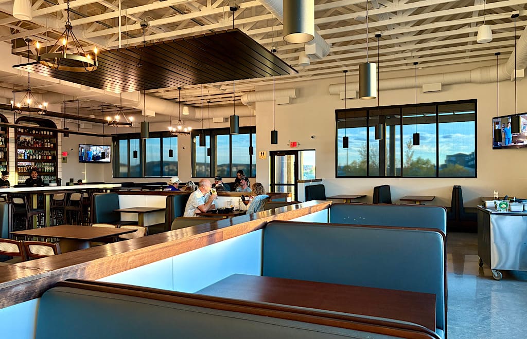 The new location features a modern, black and white design, with a higher ceiling than the southwest restaurant, he said. It’s also a little larger, holding about 150 diners at booths, tables and seating at the bar. It has a casino area with 10 video lottery machines.