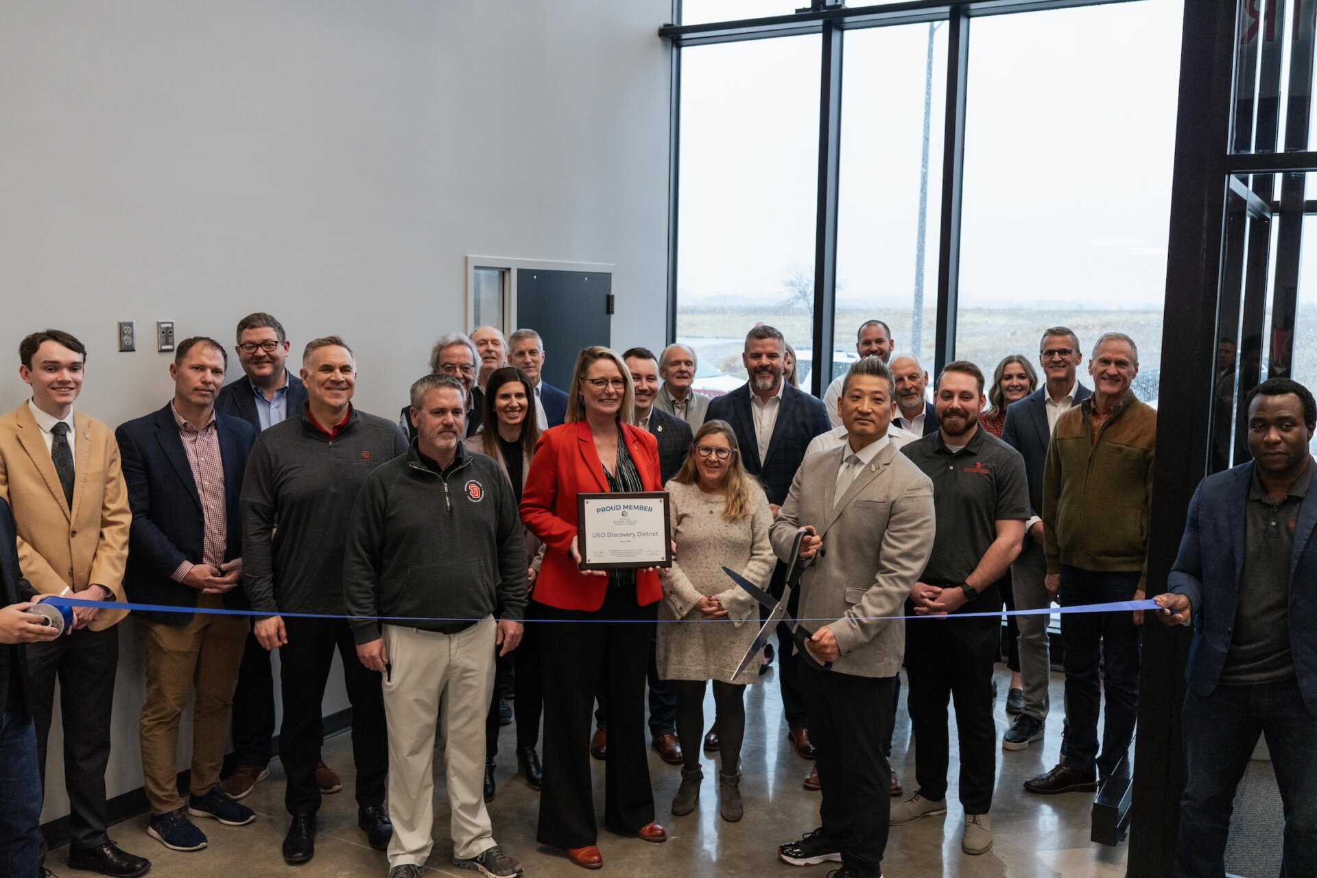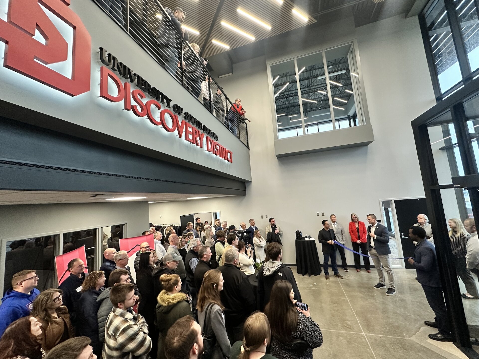 April 1 marked a historic day for the University of South Dakota Discovery District as it officially opened the doors to its first building with a grand opening and ribbon-cutting ceremony.