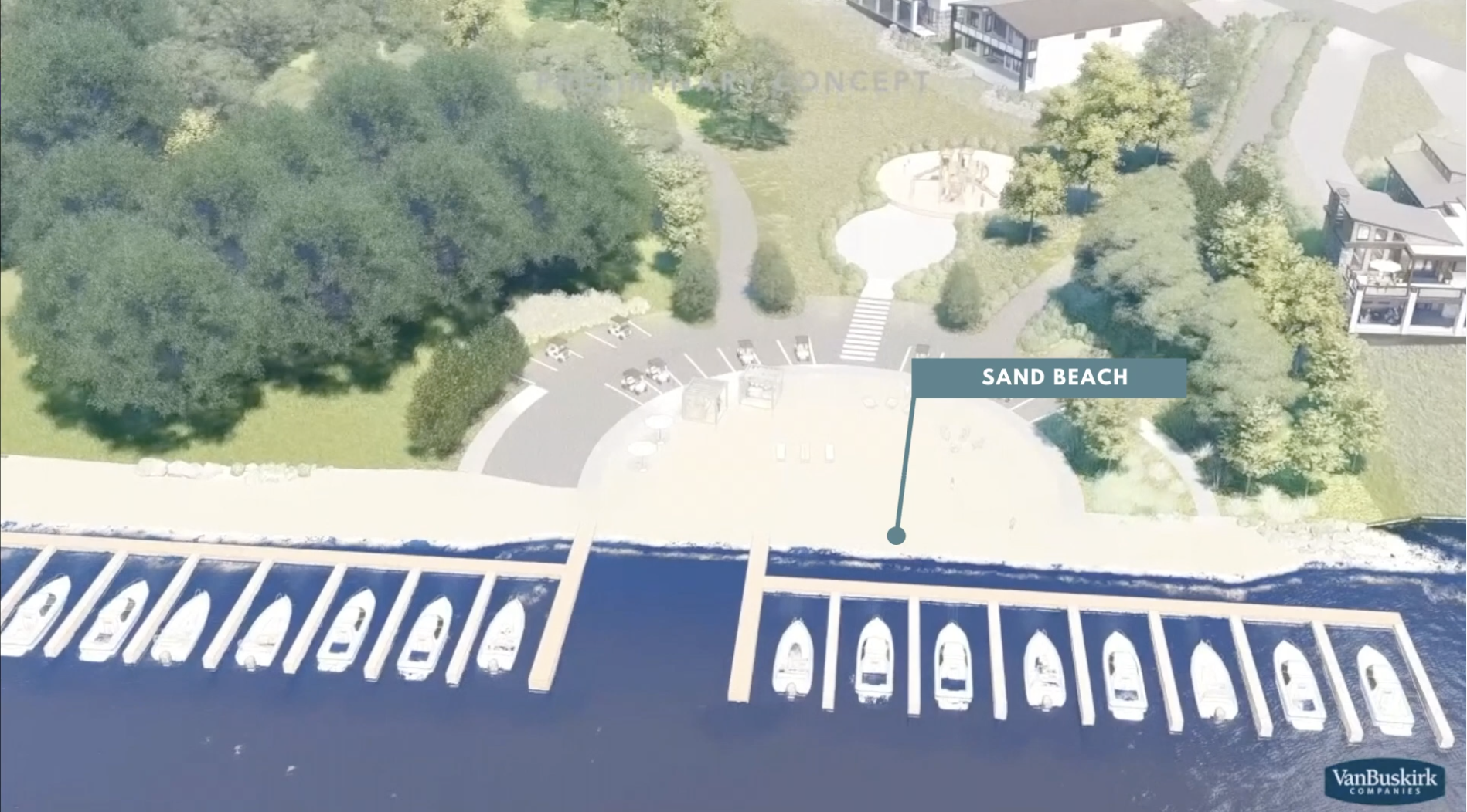 The plan is to include a professionally managed communal dock, walking paths throughout, paved roads, a frisbee golf course, playground, pickle ball court, private community beach area, a half-basketball court and ballfield.