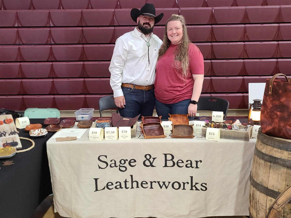 Sage and Bear Leatherworks sell belts, totes, earrings, wallets, keychains, bookmarks and valet trays.