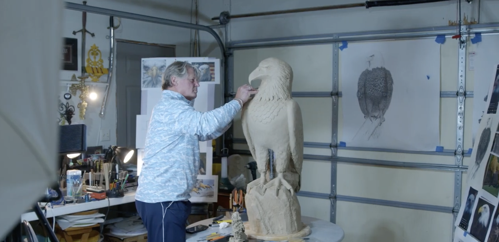 In June 2022, the artist was putting the finishing touches on the clay of the first eagle sculpture.