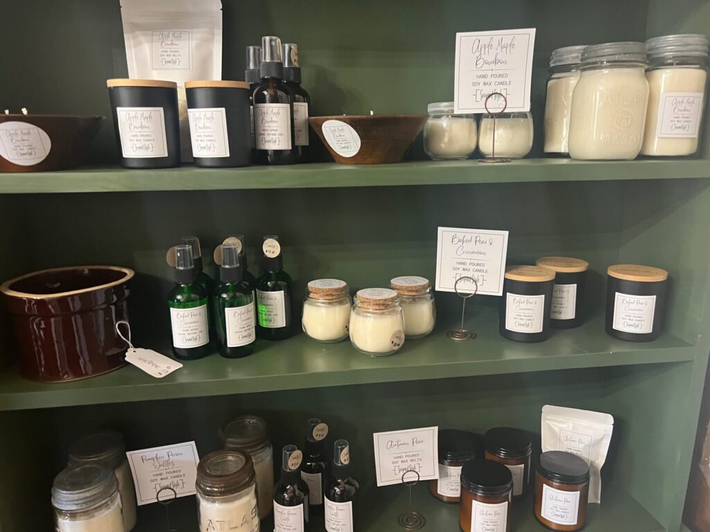 About 90 percent of the merchandise is vintage or upcycled, while Petersen hand-pours soy candles herself.