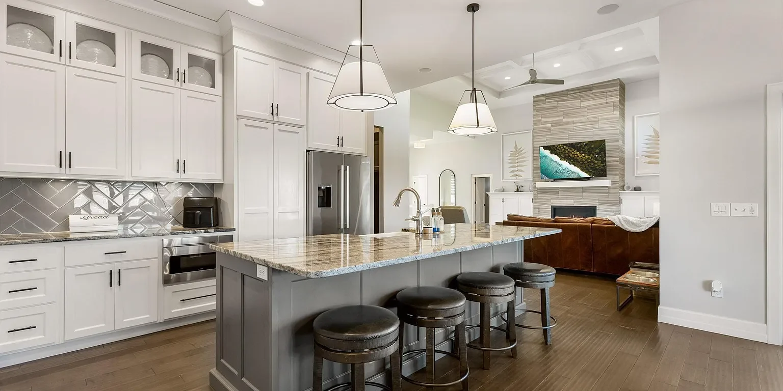 “The beautiful windows throughout add a dramatic element,” Allen said. “The kitchen is over the top with a daily eat-in kitchen area and open to the living room.
