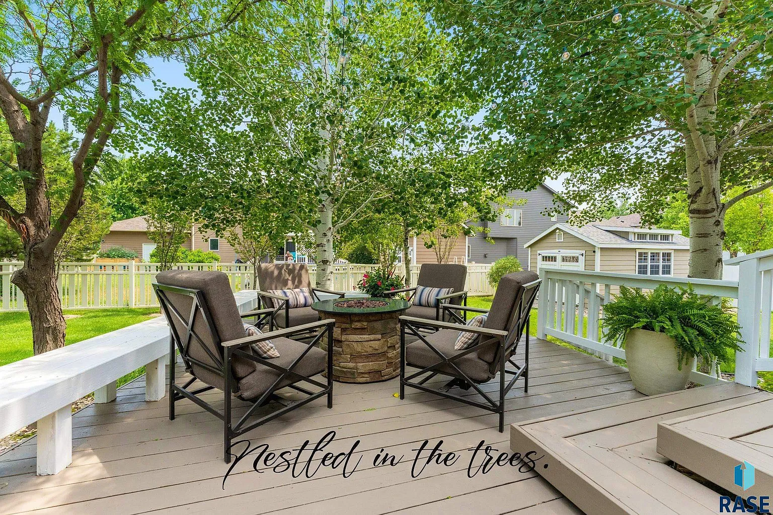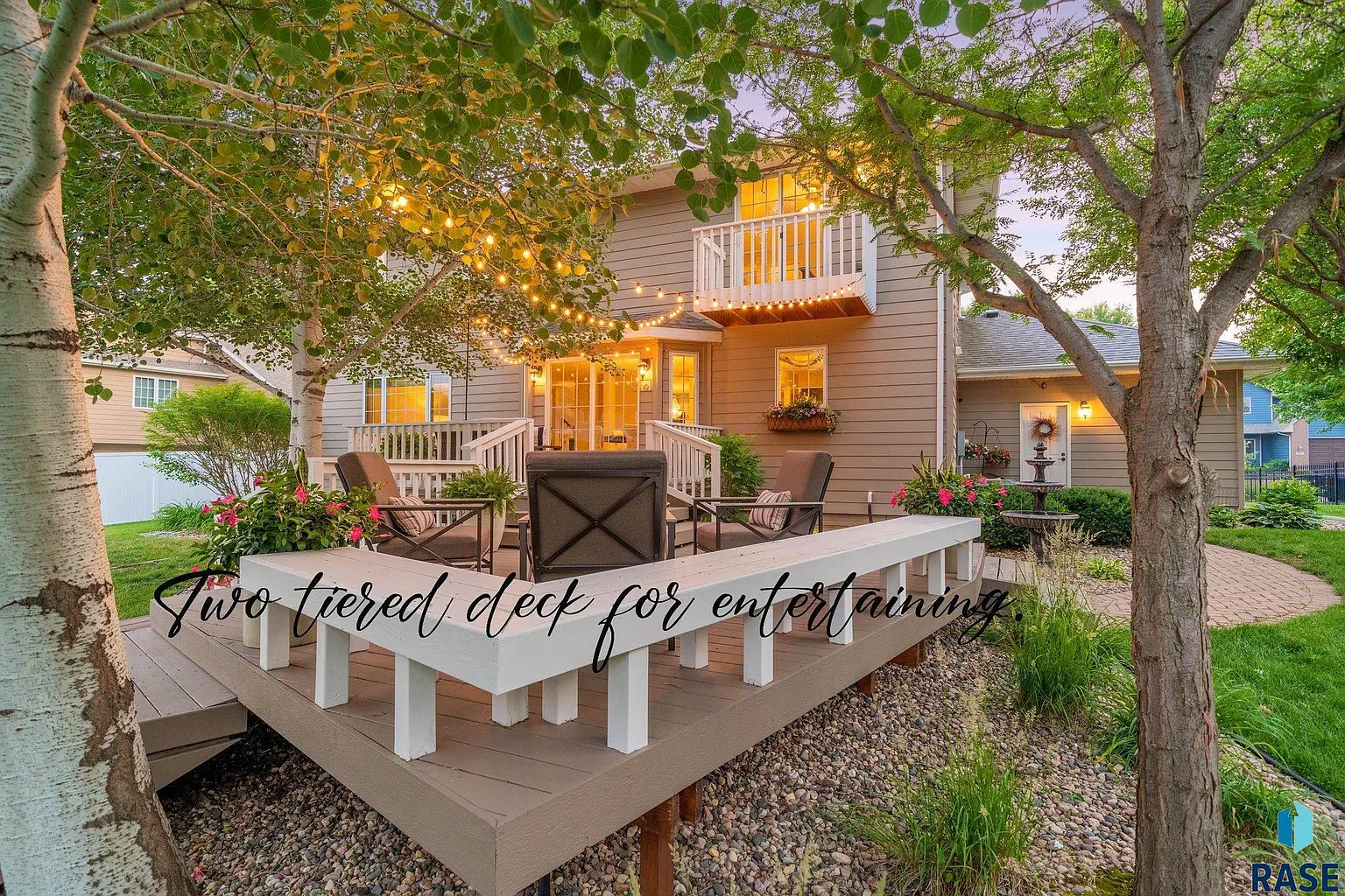 A two-tiered deck is nestled in the trees and offers a walkout from the main level.