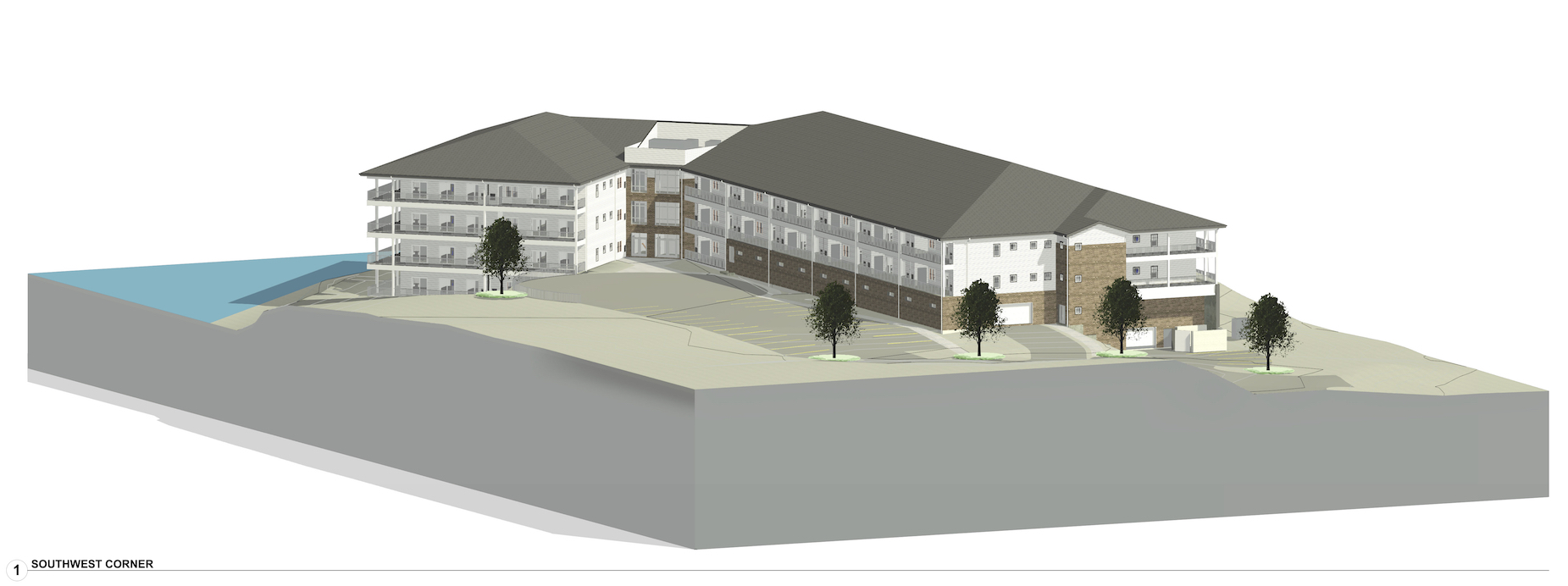 The first condo building is planned to include 46 units, ranging from about 1,400 to 1,900 square feet with double units available. Cost for the shells likely will start around $300,000 and get up to about $450,000, he said. They all will have decks that run the length of the condo.