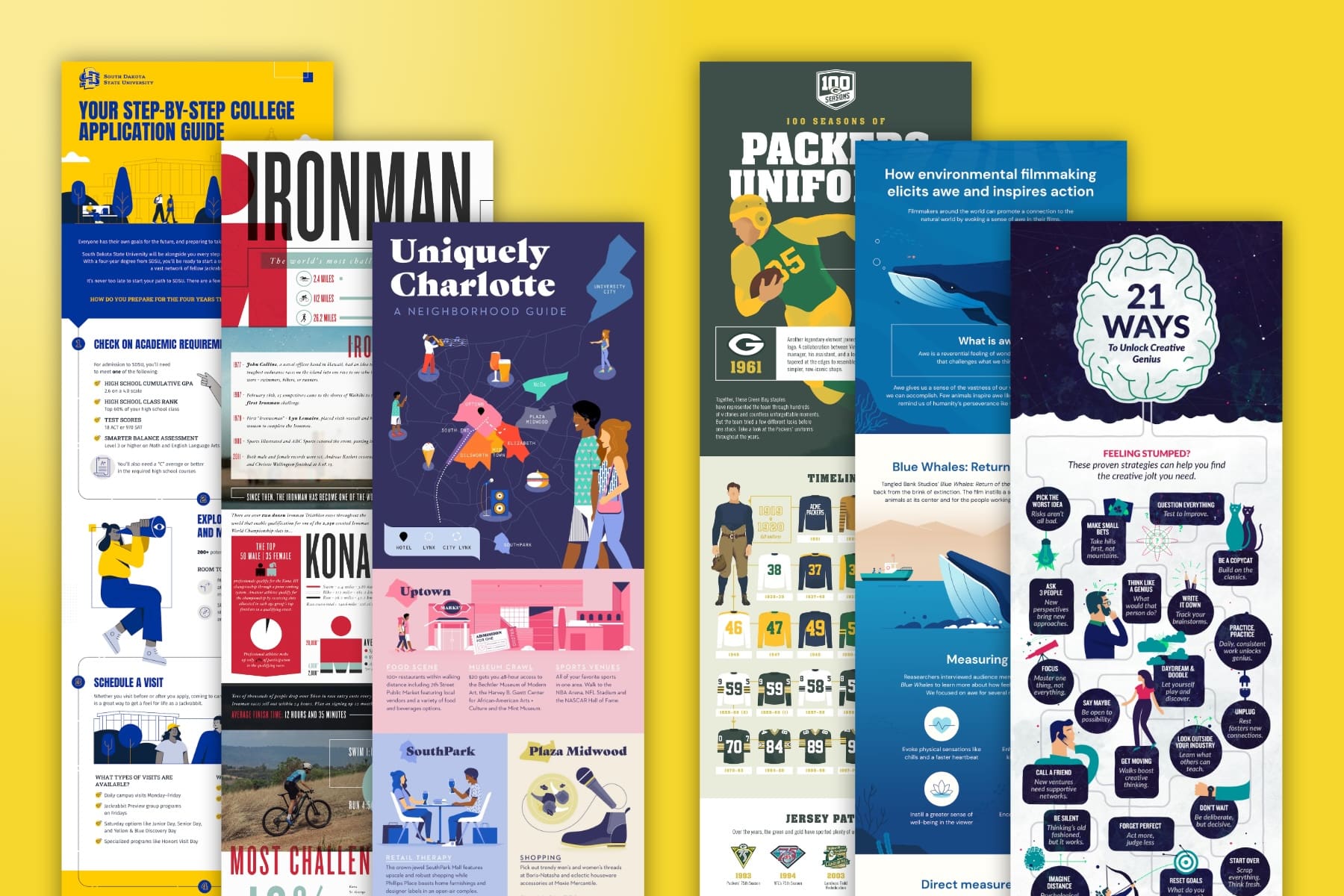 All of these are examples of visual storytelling. They feature a structured message meant to explain or entertain, combined with design that makes the story more engaging, clear or emotionally resonant. Similarly, a timeline, how-it-works diagram or before-and-after comparison are all more examples of visual storytelling. They lead the viewer from one idea to the next with purpose and have clear goals for what they want to communicate.