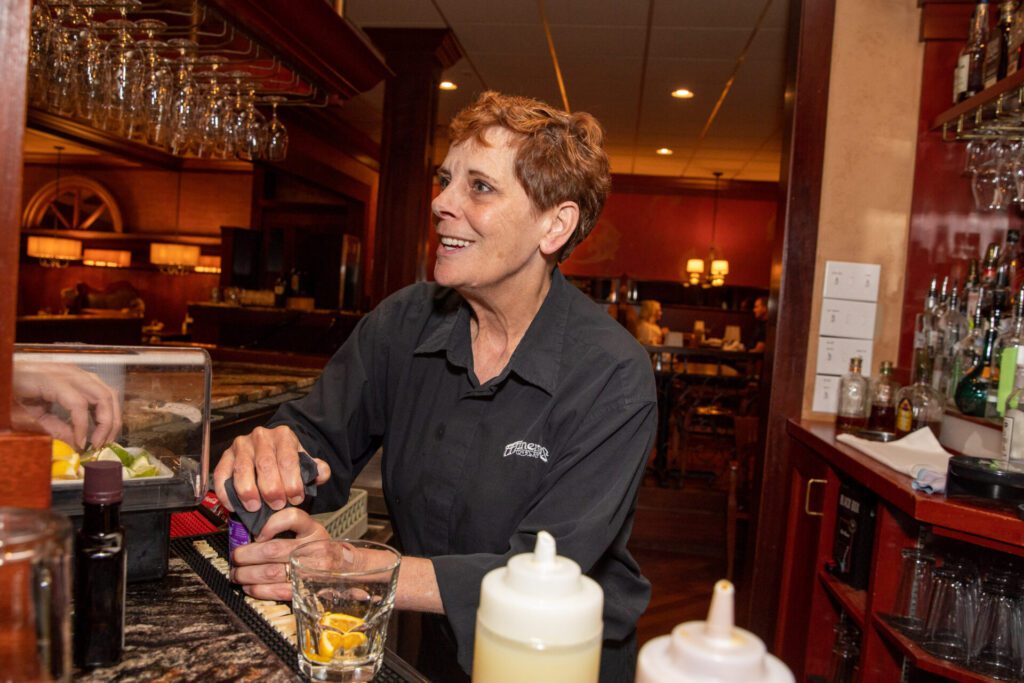 Now, you’ll find her Monday through Friday behind the bar and serving tables until 3 p.m.