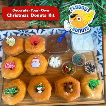 Last year was the first Flyboy offered decorate-your-own Christmas doughnut kits. So they’re back and better than ever.