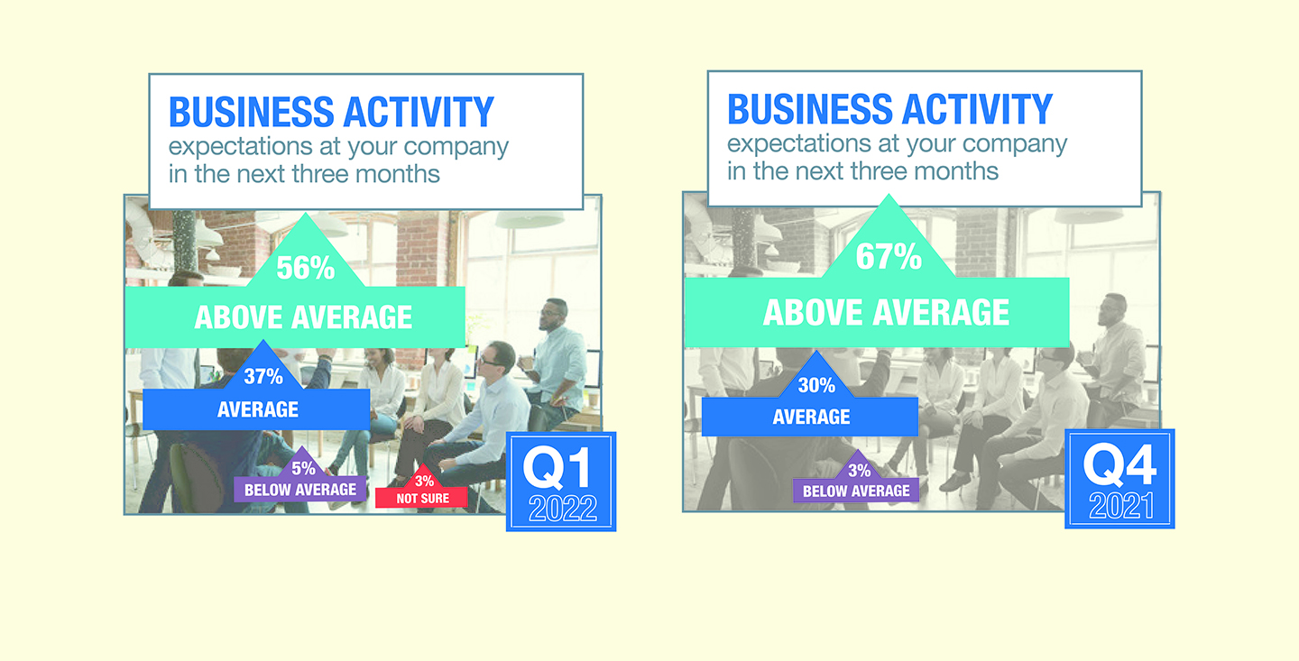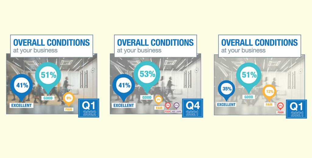 “These views are consistent with national data showing strong economic growth, low unemployment, rising inflation and increasing interest rates. Concerns about the political economic ramifications of the Russian war in Ukraine, ongoing supply chain disruptions and higher fuel prices are dampening the positive effect that federal stimulus dollars, higher sales, lower unemployment and falling COVID-19 infection rates would otherwise yield.”