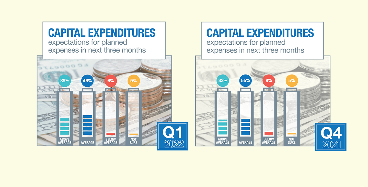 In projecting capital expenditures, 88 percent expect average or above-average spending, compared with 87 percent in the prior quarter.