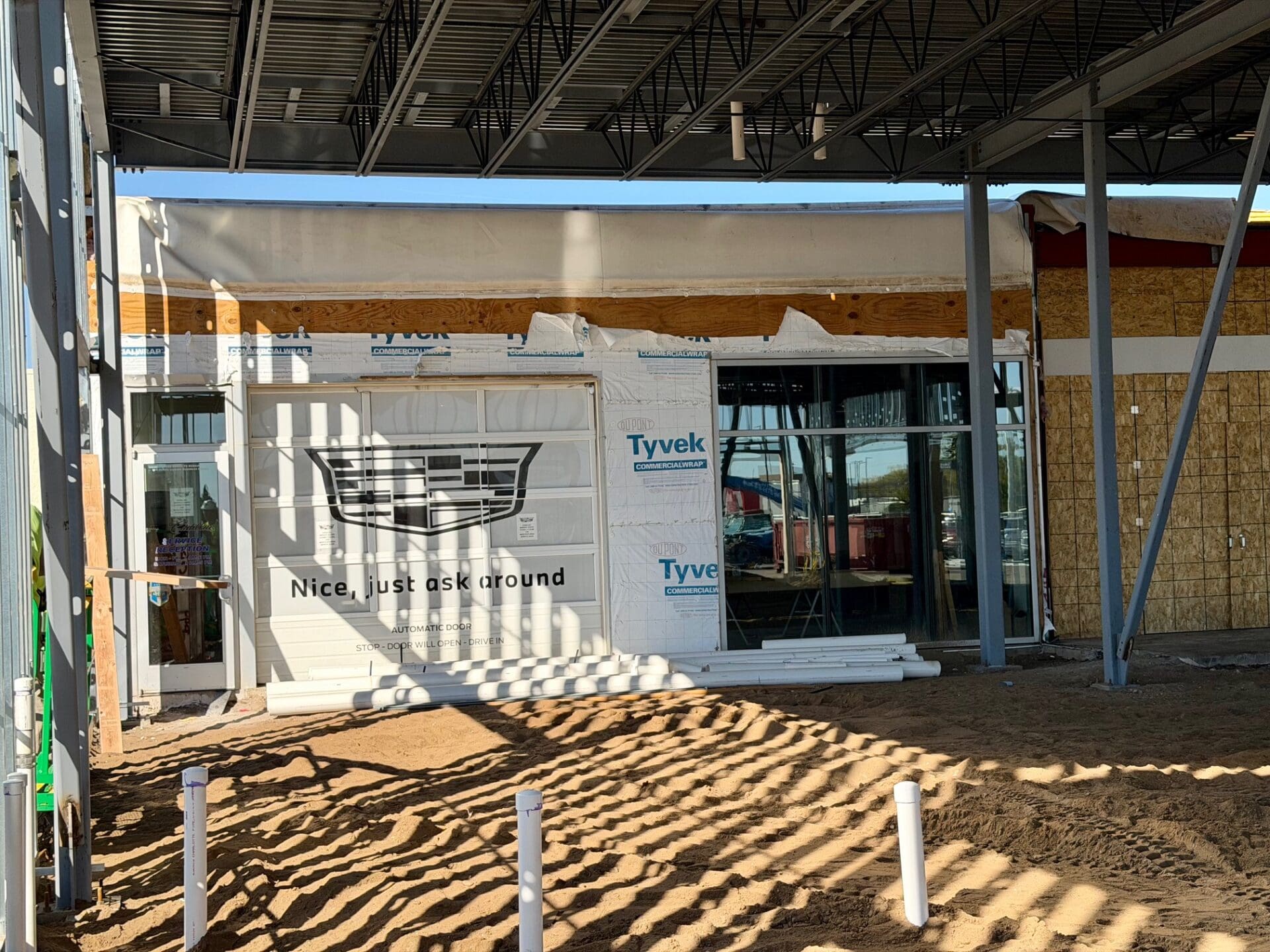 The service end of the dealership is being reconstructed to turn the entrance to the west and double it in width.