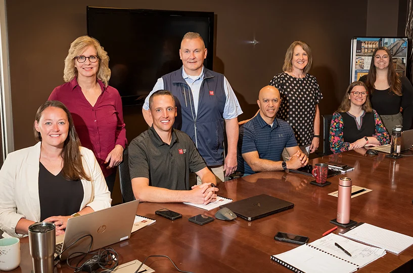 TSP chief financial officer Brenda Moore; board members Sara Steever, Lucas Lorenzen, Jared Nesje and Mike Grigsby; executive assistant Paula Reiff; board member Michelle Klobassa; and guest board member Autumn Kayl.