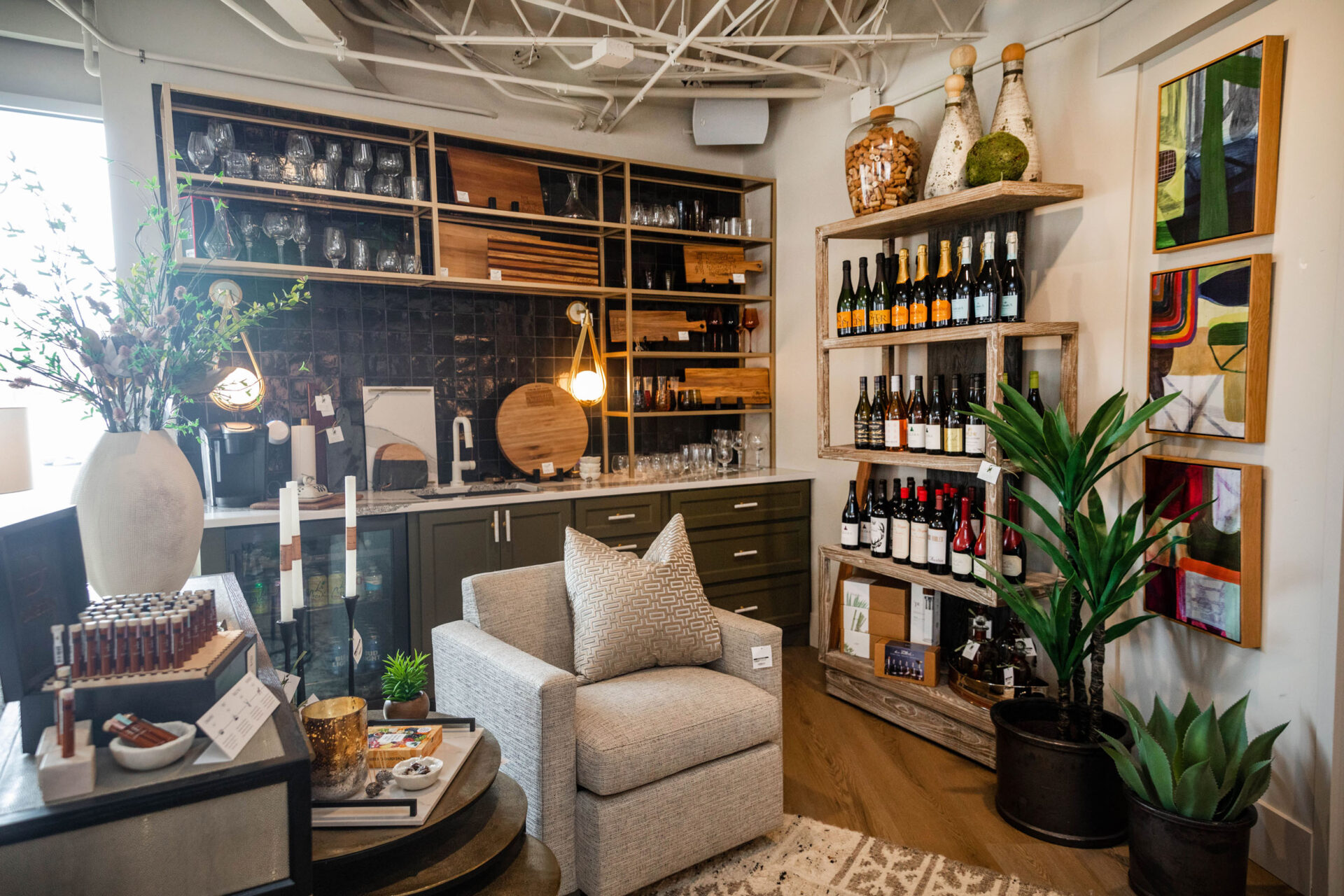 There’s also a selection of gift items, and some product lines have led to others. Selling charcuterie boards and stemware led to a wine license and selling mustards, dips and sauces, for instance.