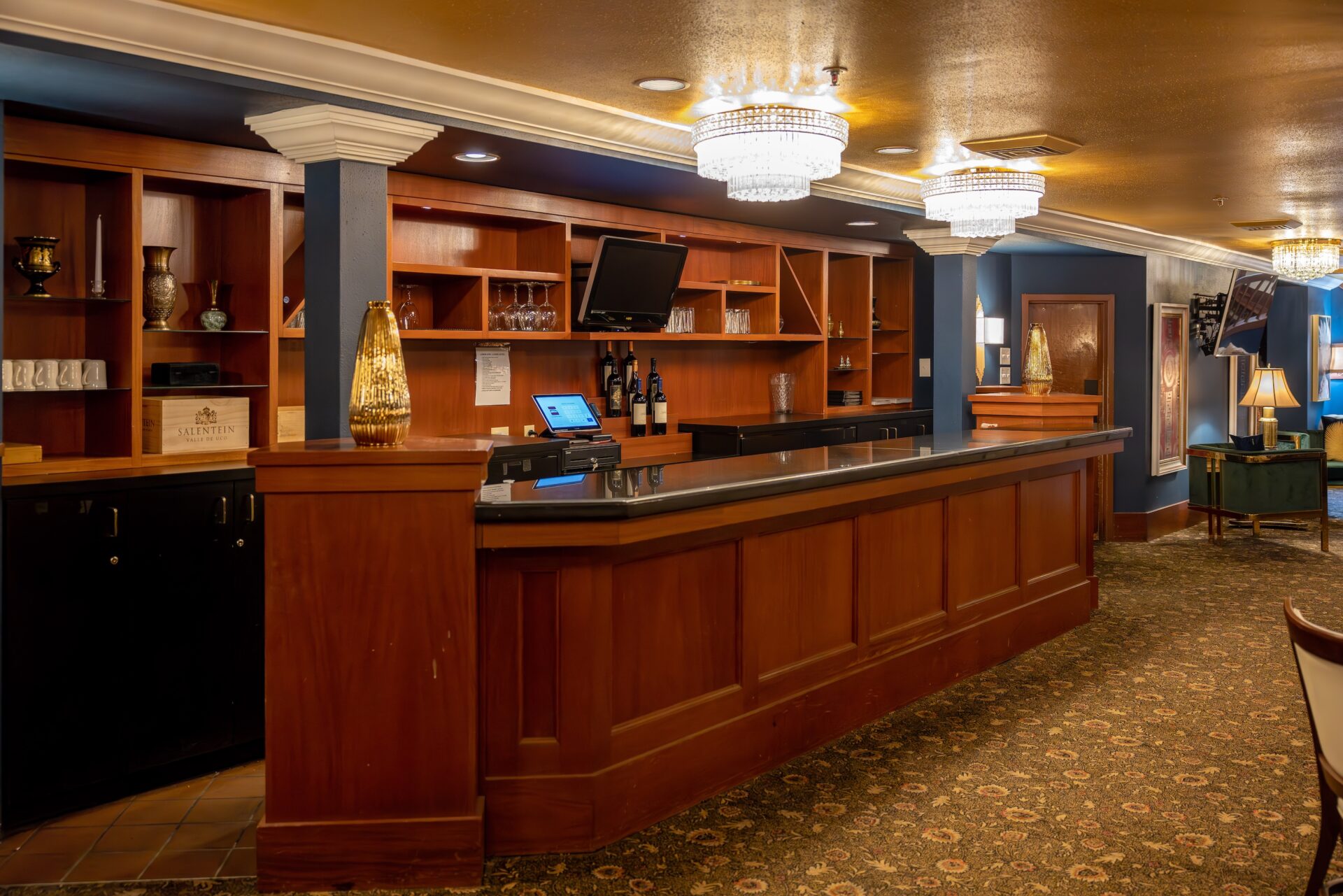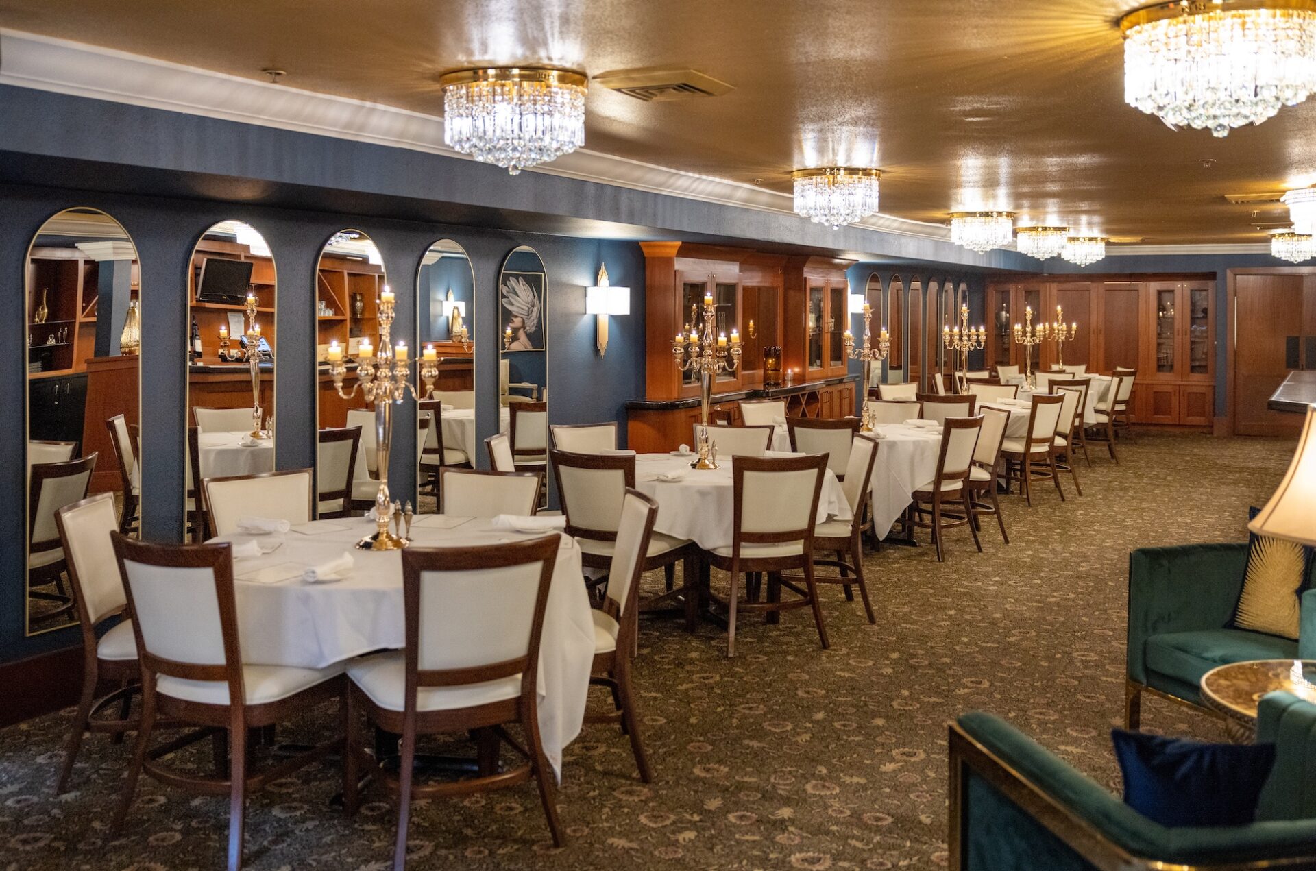 “Recently, the room has undergone an elegant transformation, featuring crystal chandeliers, exquisite artwork and stylish yet comfortable seating arrangements that enhance the overall ambiance.”