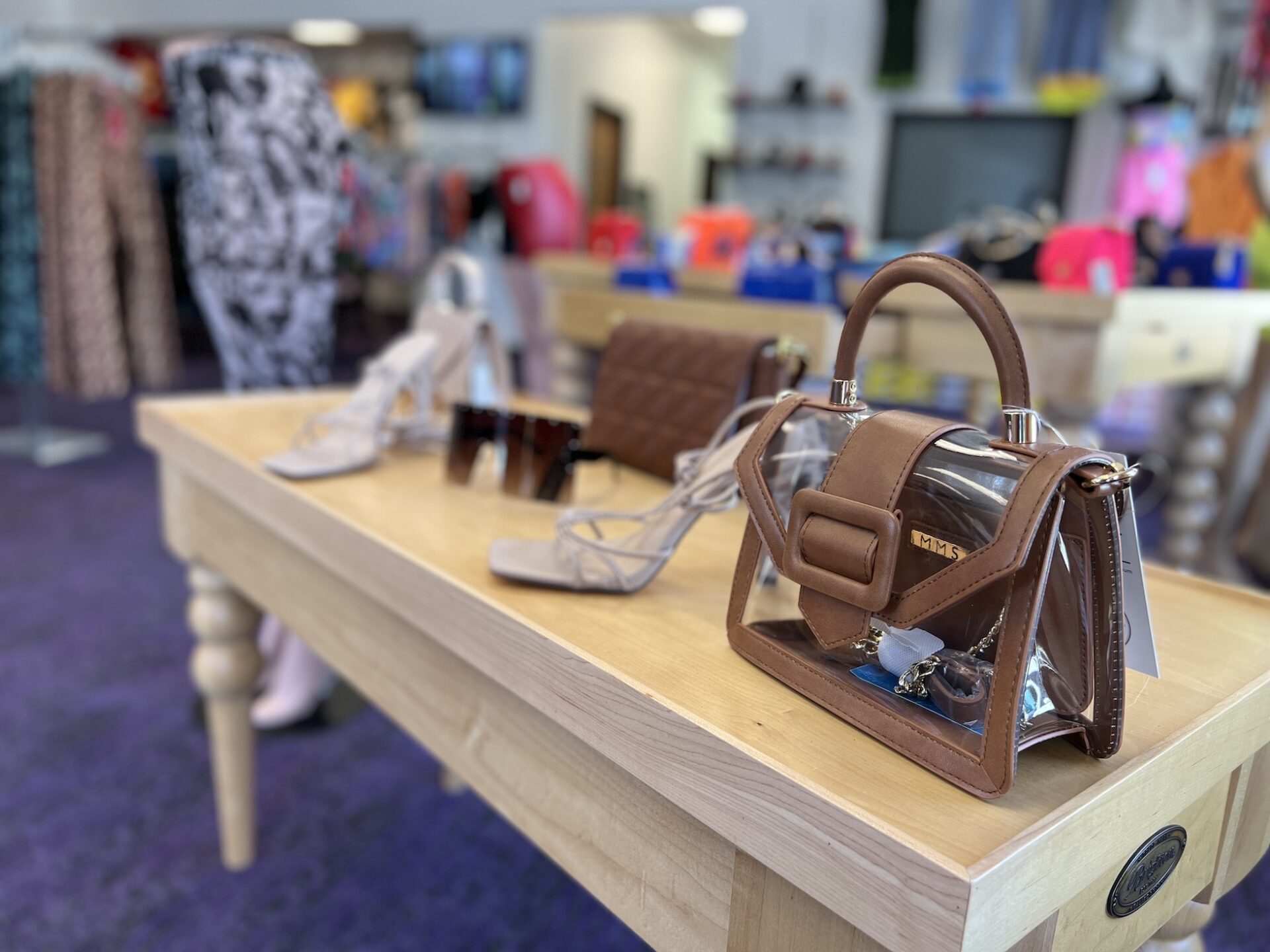 In addition to clothing, the store offers shoes and accessories.