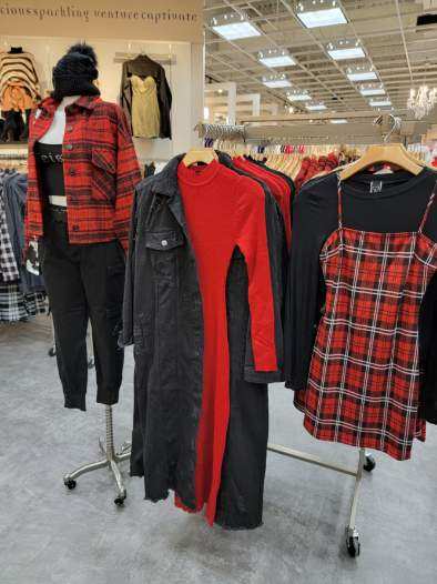 The winter collection includes flannel shackets, sequined holiday dresses, plaid wool coats and knee-high boots.