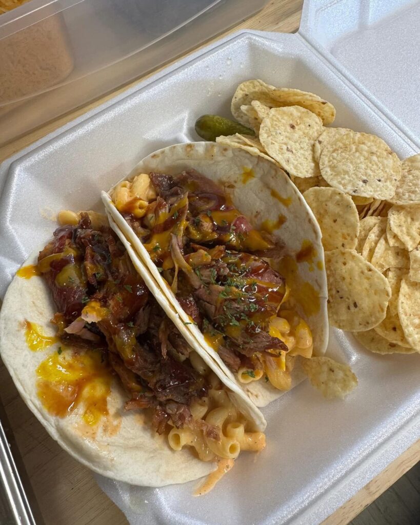 Reese and Spilger make brisket and pulled pork tacos and homemade mac-and-cheese bowls loaded with brisket or pulled pork.