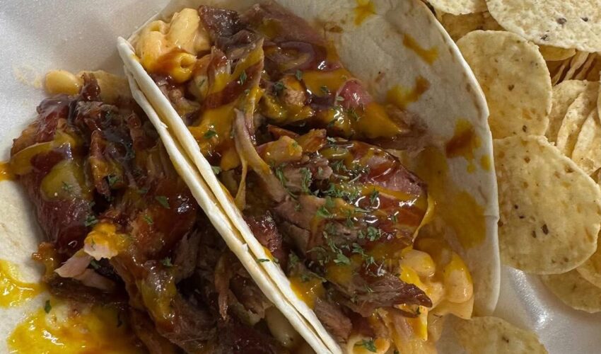 One of the newer additions to the menu is a taco with mac-and-cheese, smoked meat and barbecue sauce.