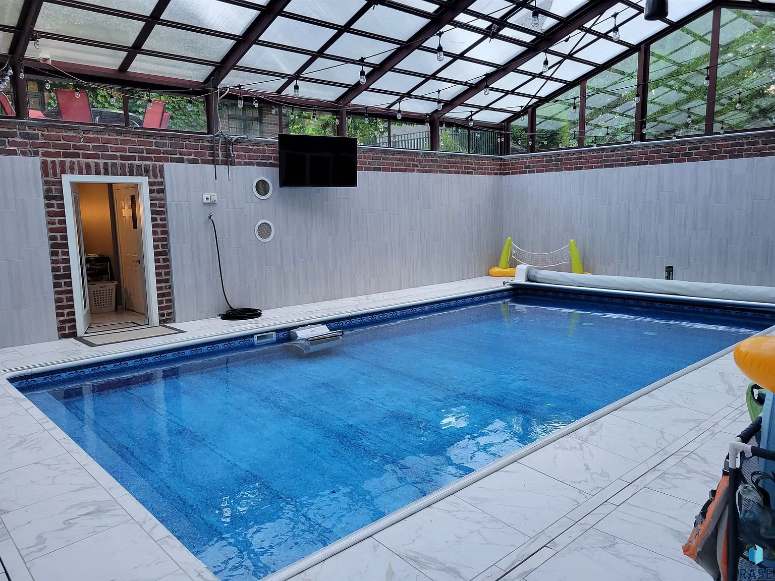 And the lower level includes a non-legal bedroom, media room and even a connection to an indoor pool.