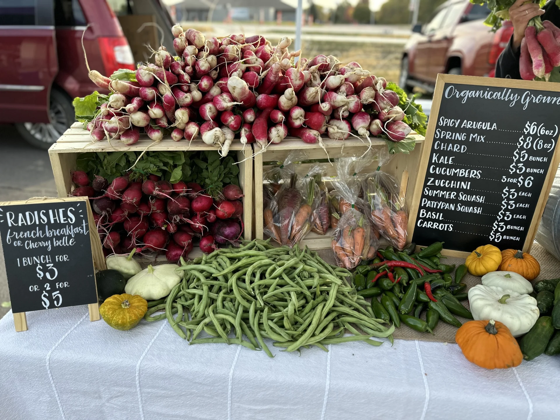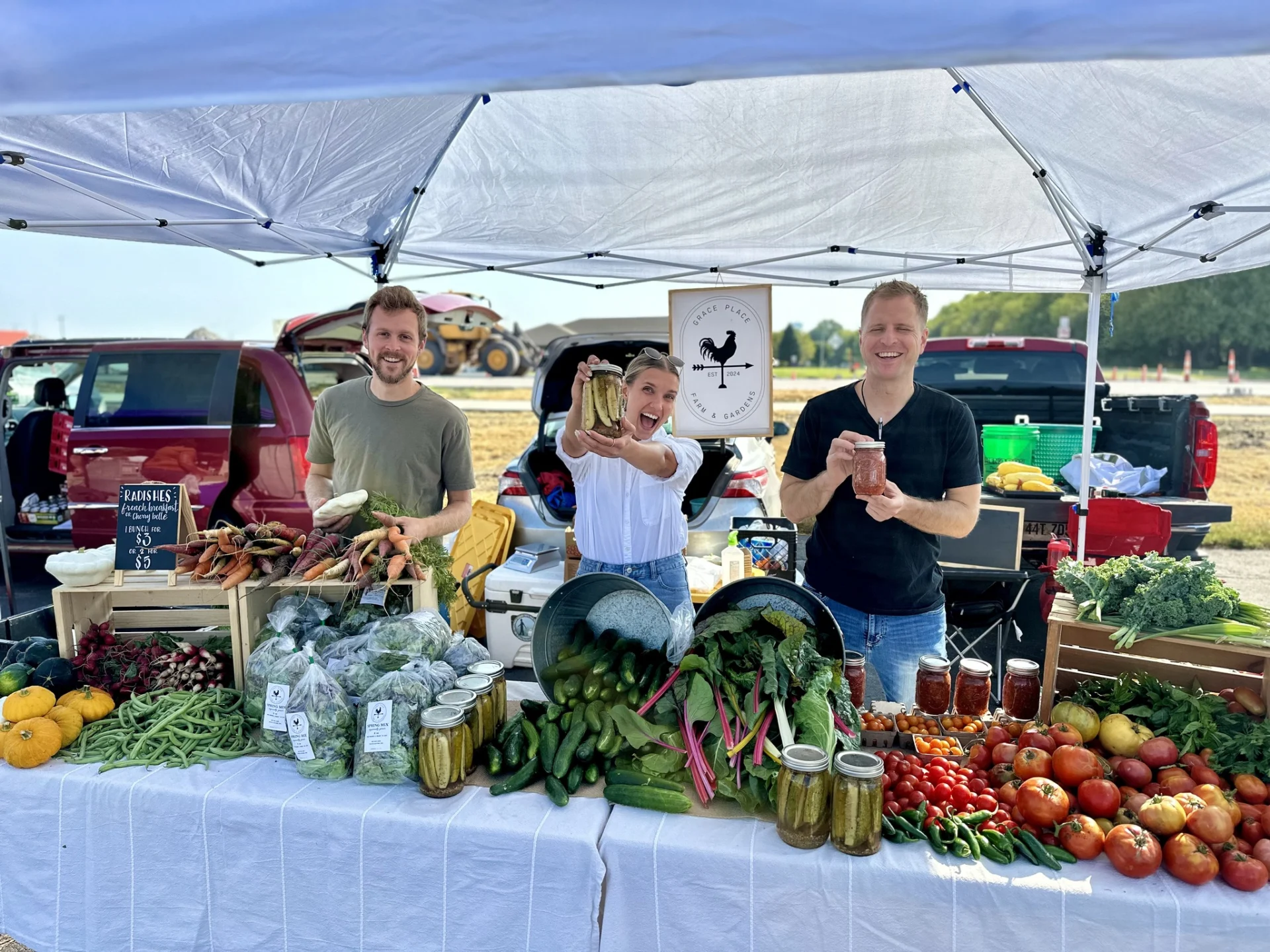- A wide selection of farm products, garden produce, pastured poultry and homemade goods.