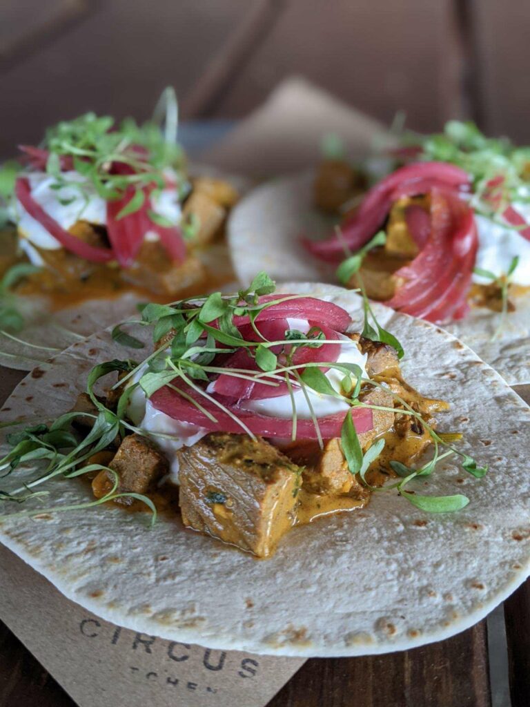 For instance, at Bread & Circus Sandwich Kitchen, you’ll find curry bison tacos.
