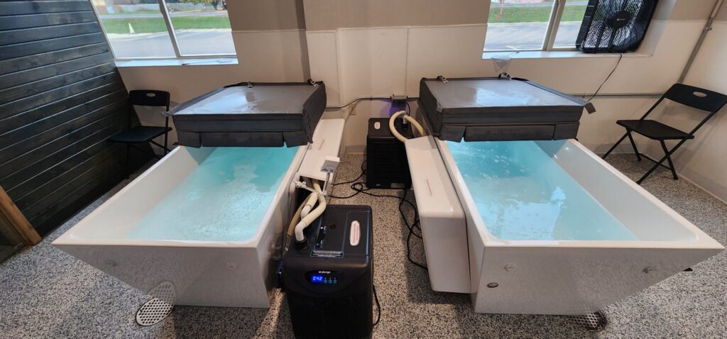 “But by far, the most popular part of the recovery lounge is the Contrast room, where we have the hot sauna and cold plunge tanks,” Knoll said.