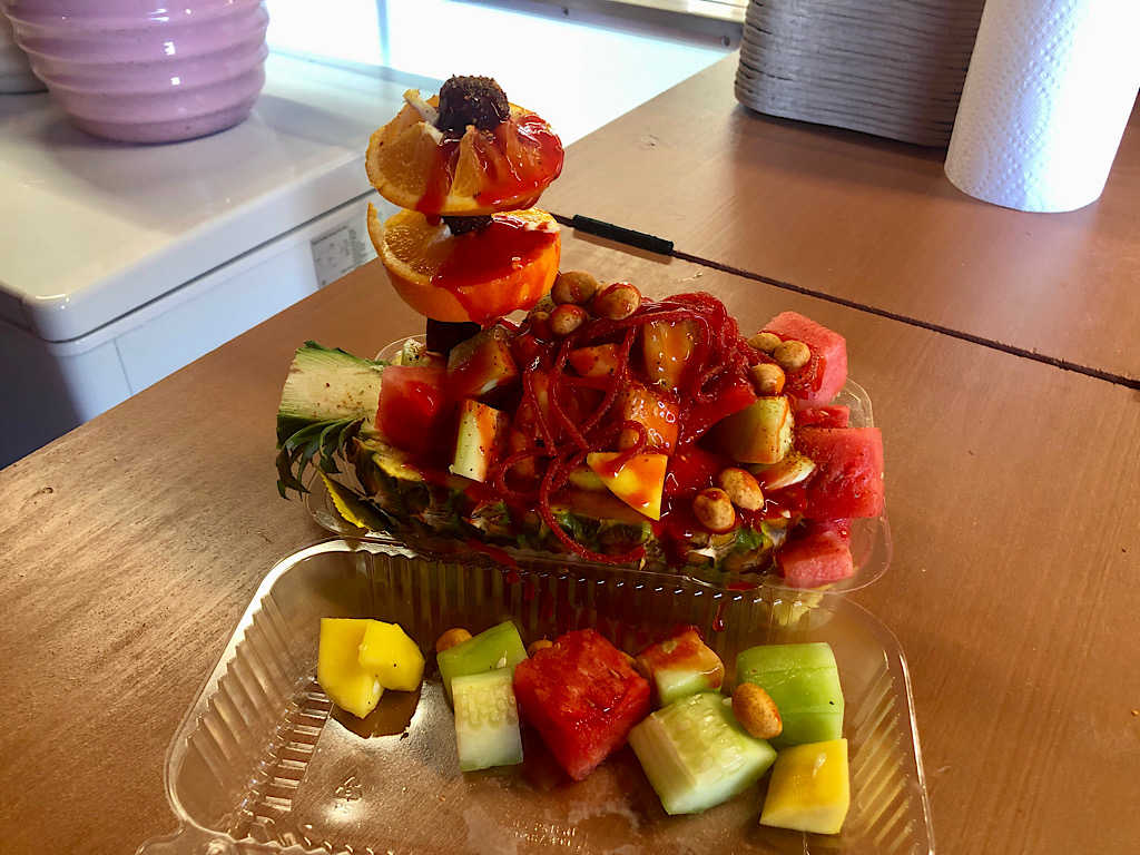 The menu includes fruit bowls like the bionico with yogurt and granola, and the pina loca, or crazy pineapple.